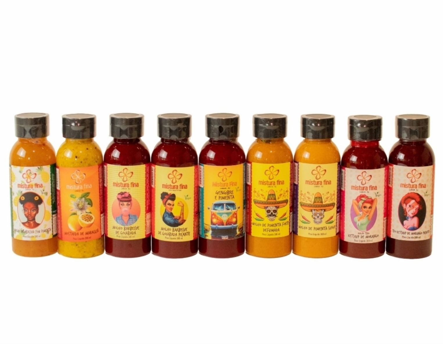 Combo Degustação Mistura Fina: todos os nossos molhos artesanais em uma única caixa. Sabores tropicais, picantes, doces e defumados para transformar qualquer refeição em uma explosão de sabores.