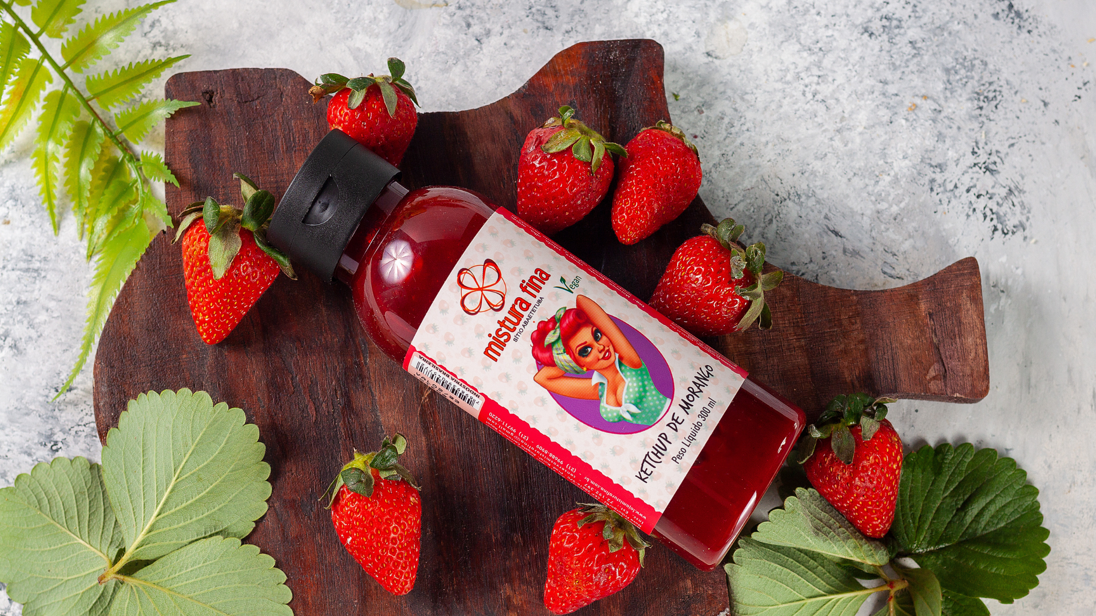 Ingredientes: Morango, tomate, vinagre, açúcar, amido modificado, alho, cebola, goma xantana, sal, sorbato de potássio, benzoato de sódio e cravo.