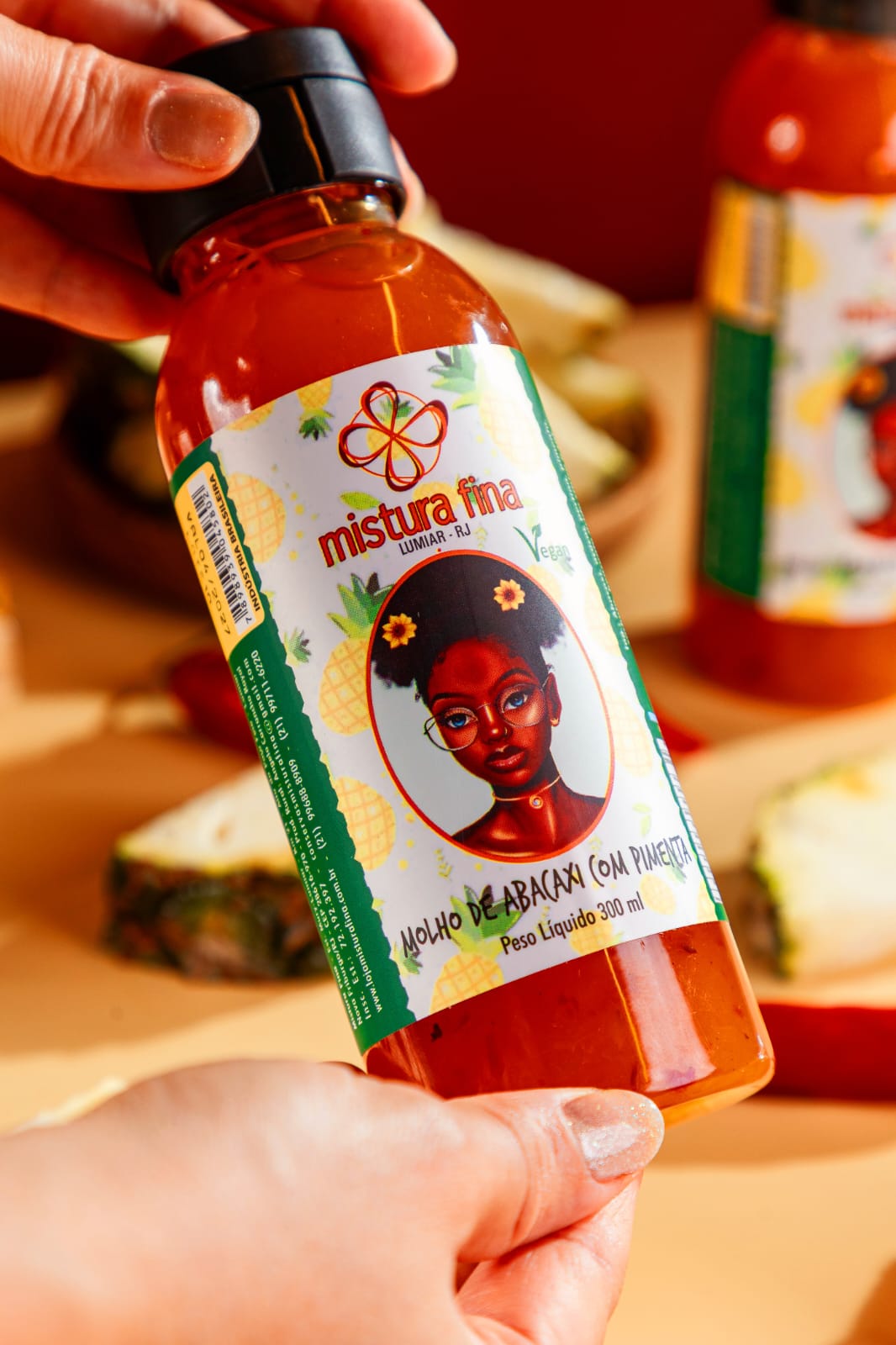 Ingredientes: abacaxi, açúcar, pimenta, pectina, sorbato de potássio, benzoato de sódio , ácido cítrico e sal.
