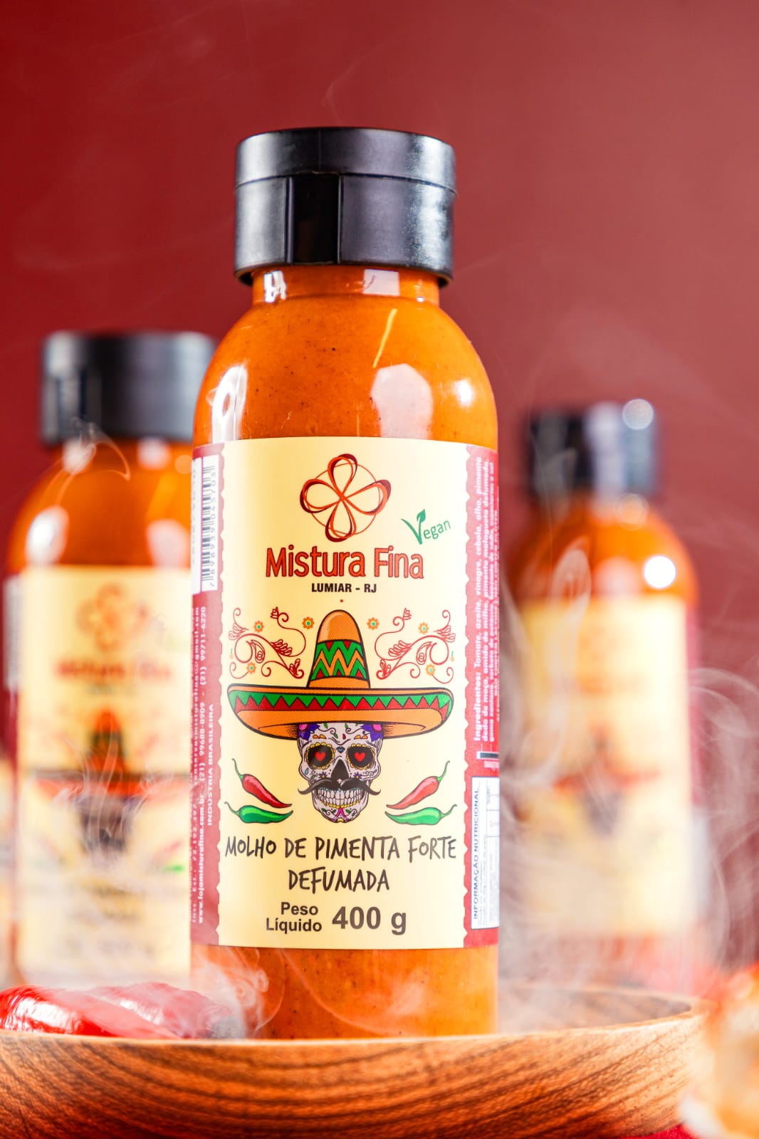 Molho de pimenta forte, com sabor defumado oriundo da defumação natural da pimenta malagueta, cremoso e aromático.